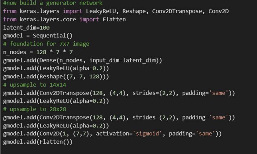 For this example the network layout copies the generative part of the above referenced GAN model.