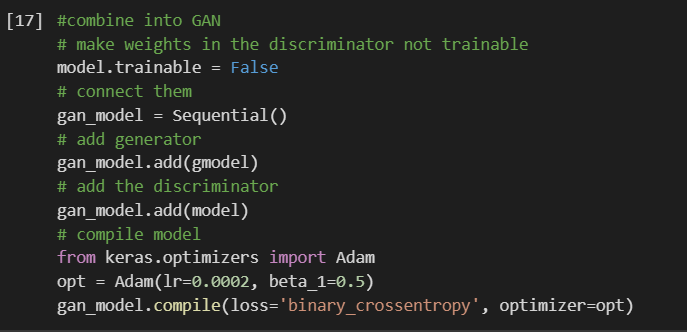 and start the training of the generator model (note the discriminator model is set as not-trainable).