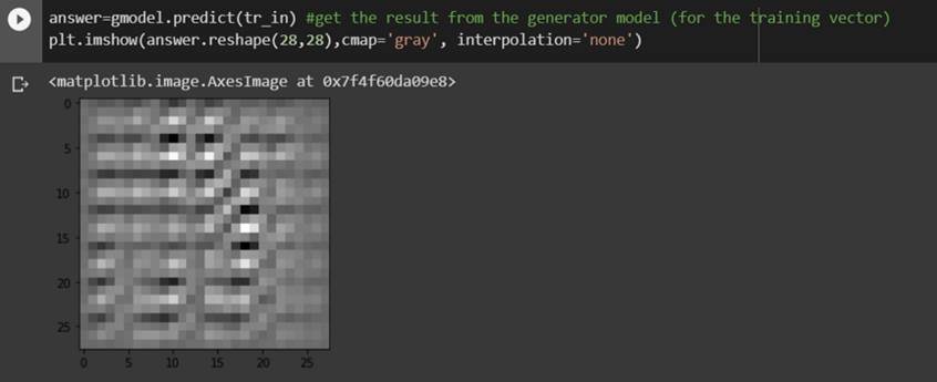 The result above shows the generator training with the backpropagation from the existing trained model can easily create input data fitting the trained detection model, however the images are not plausible. They generally don't come even close to the training dataset images. That's why the full GAN concept relies on the training dataset to differentiate between generated images that fit the discriminator model, but significantly differ from the expected input.