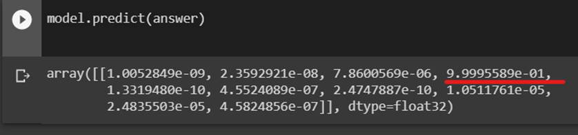 The generated image doesn't look much like handwritten number '4', so let's try how the MNIST trained model recognizes it.